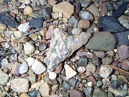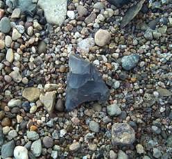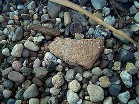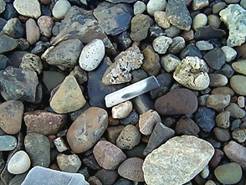 artifacts amongst the beach gravel.