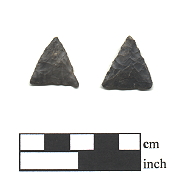Description: small, thin triangular points; equilateral or isoceles in outline; straight or concave base with blade edges being straight in nearly 75% of known samples